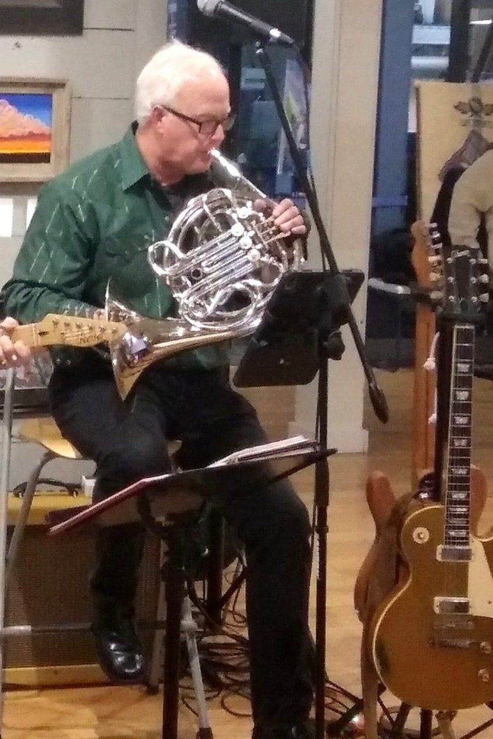 I joined the Peninsula Symphonic Band (horn) and the Swingin’ Door Big Band (guitar) in early 2020. I have been the Treasurer starting in 2022. I have played horn since sixth grade, and played through college (’78, UW-EC) but then took a long period off due to family and career issues. In the 1990s, I played with the UWM Community Orchestra. In 2018, I joined the UWM Community Band and I essentially started over as a horn player. I took some lessons when I retired, and it really helped me get back into the instrument.